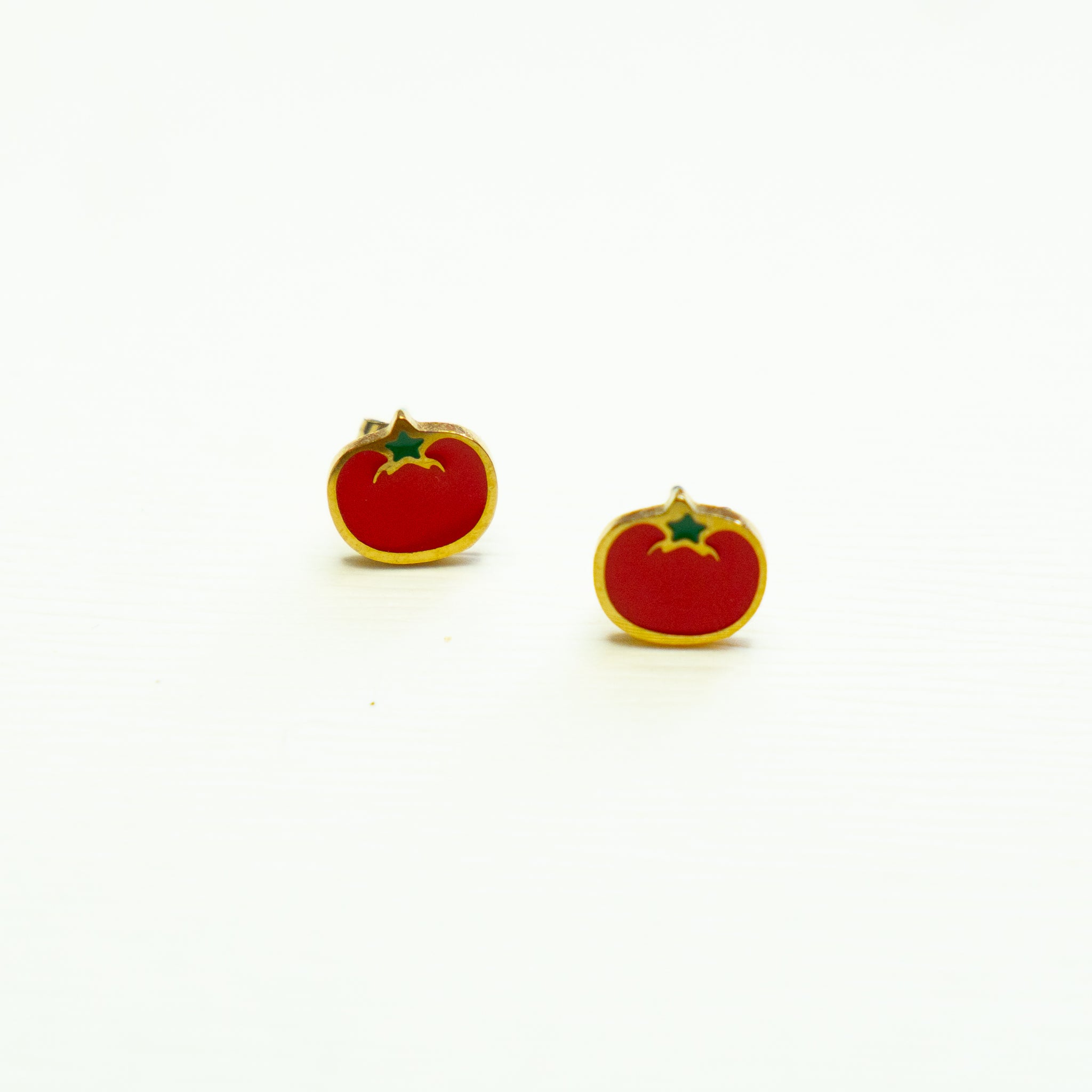 Garden-fresh style in miniature form! These charming tomato stud earrings are perfect for veggie enthusiasts and nature lovers. Featuring vibrant, detailed tomato designs, these tiny treasures add a pop of personality to any outfit. . A delightful conversation starter that proves good things really do come in small packages.