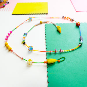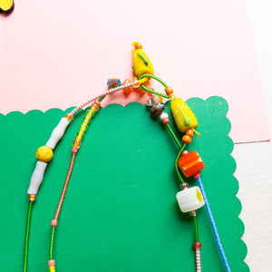 These one of a kind beaded necklaces are carefully strung with Japanese seed beads, etched vintage glass beads and hand made lamp glass beads. Truly dainty, colorful and very unique.
