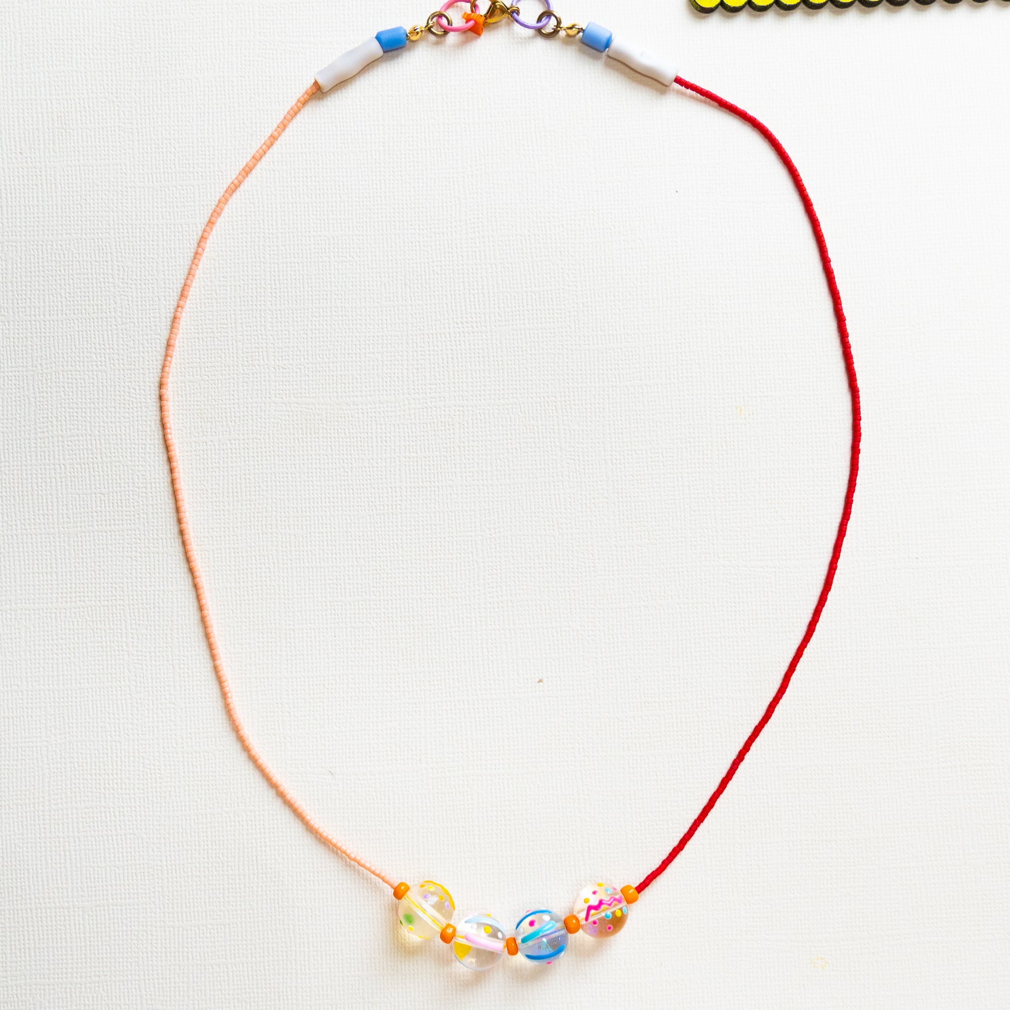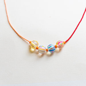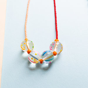 These one of a kind beaded necklaces are carefully strung with japanese seed beads, etched vintage glass beads and hand made lamp glass beads. Truly dainty, colorful and very unique.